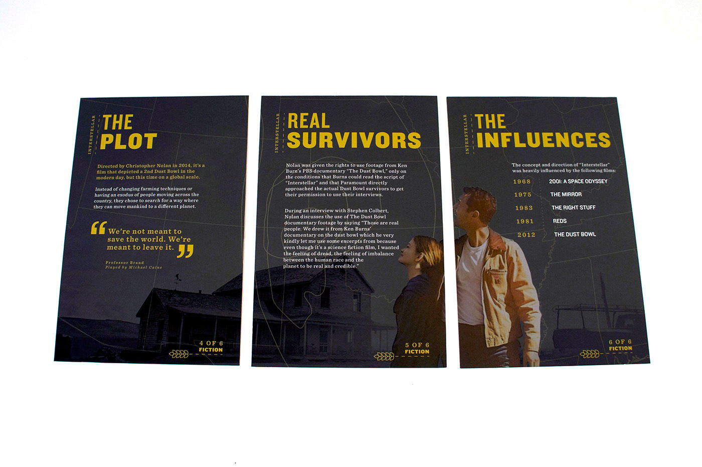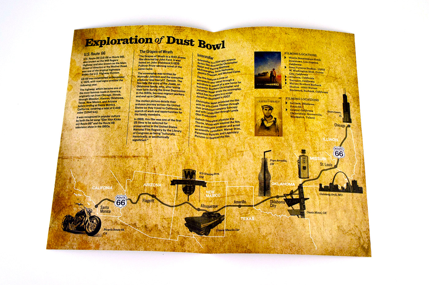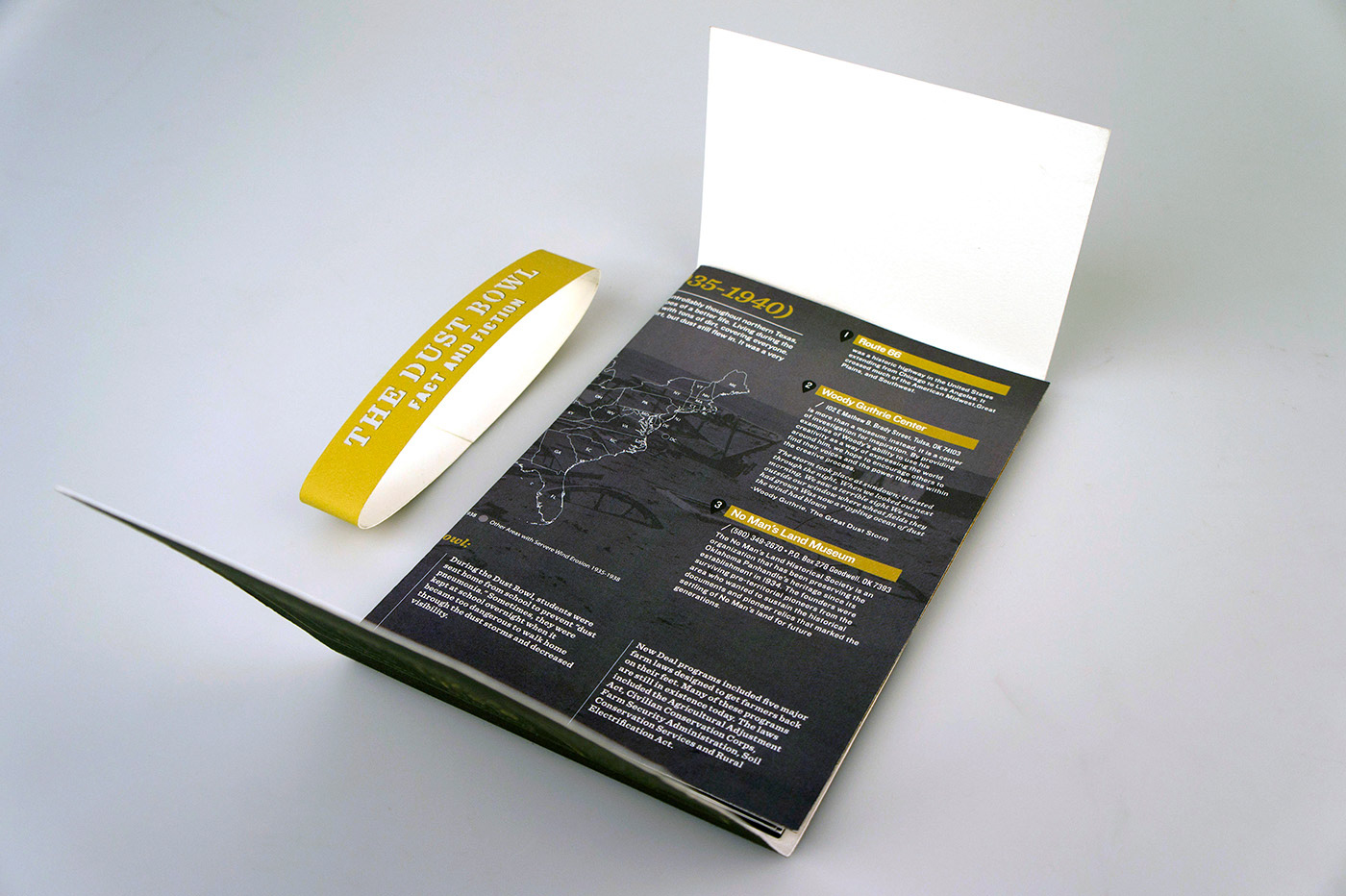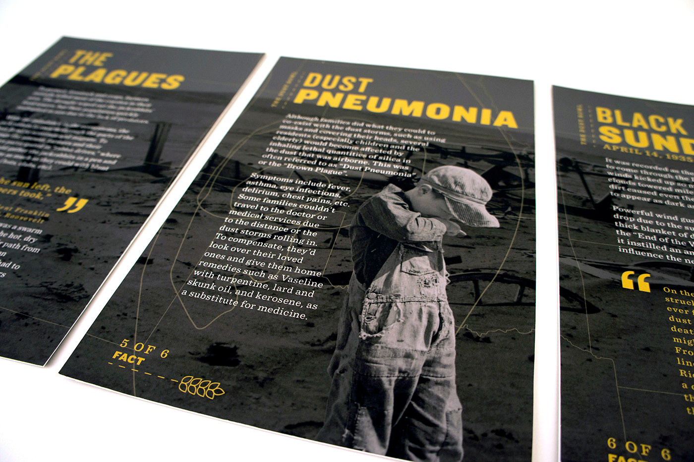My partner and I decided to cover the "Dust Bowl". Since we pictured the information set to be distributed to students at Dust Bowl related museums (i.e Woody Guthrie Center, No-Man's Land Museum), we chose the essential features of the design to be a card set and a map in order for the set to be engaging and hands-on for students.