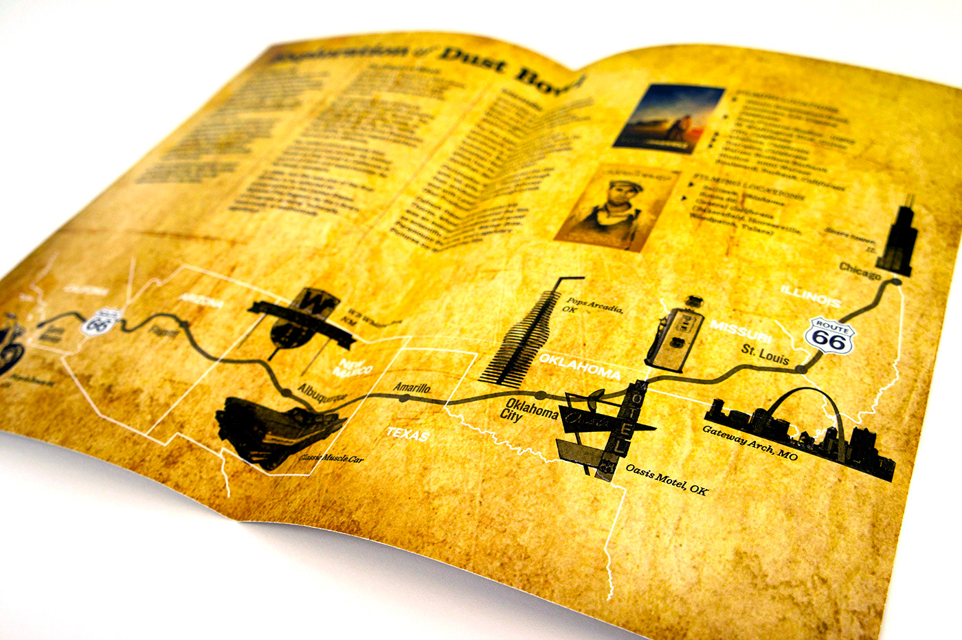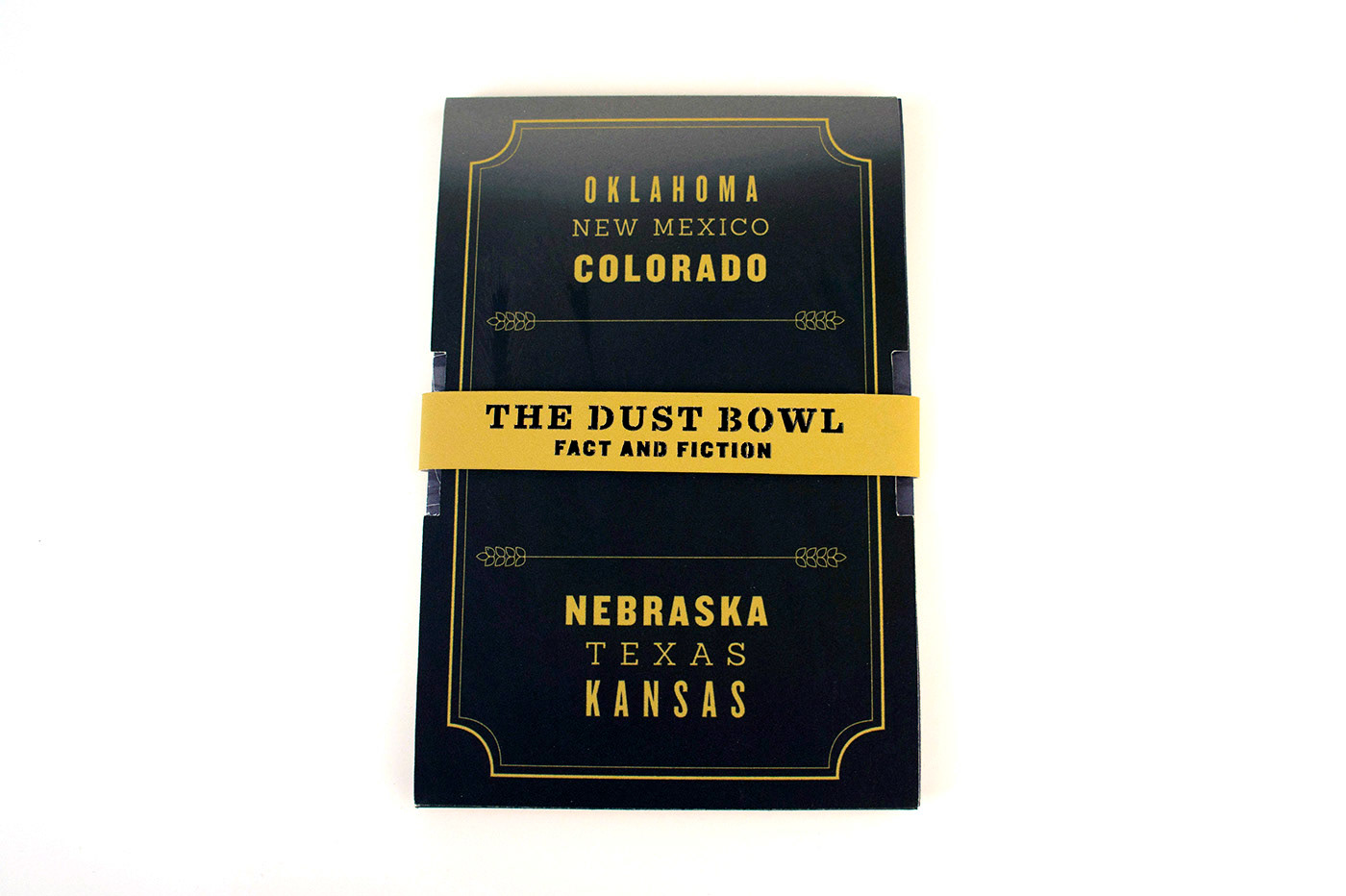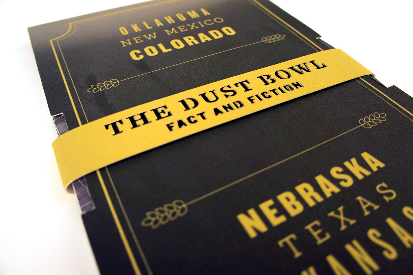 The objective of this class project was to collaborate with a classmate partner, create a packaging/print mock product that covered a topic that originates from our state (Oklahoma), experiment with incorporating the use of a laser cutter, and pick an audience.